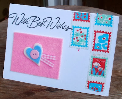 Hier habe ich mal eine Karte aus Elementen mit Filz und Washitape gestaltet,